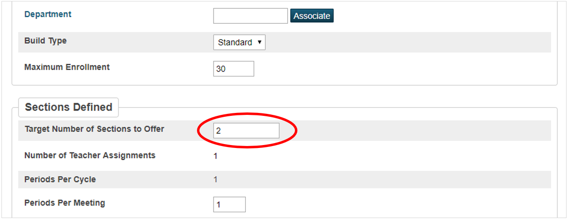 | # Sections Assigned | The actual number of sections (classes) that have been assigned to a teacher for the course specified. Teacher assignments should be loaded into PowerScheduler in preparation for the “build” process. More information about adjusting this field is found in Part 3 of this document. |