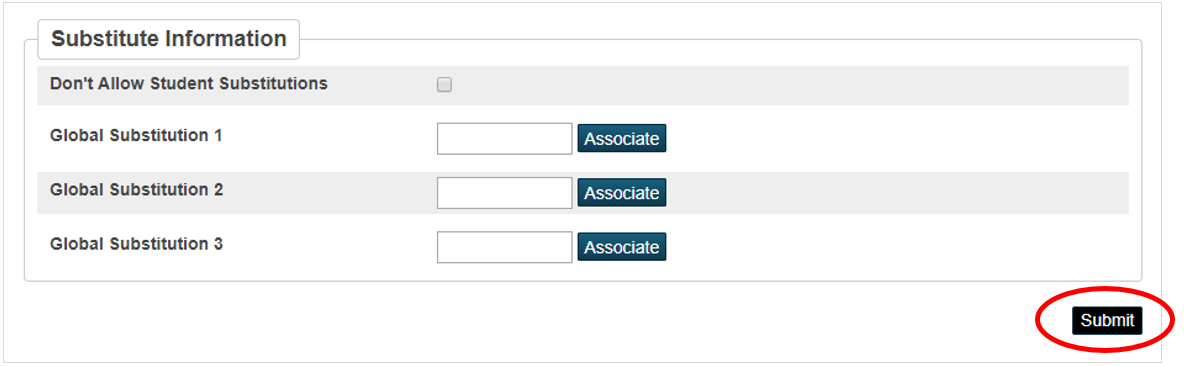 3. Once you have entered the correct number of sections to offer (as determined by the Scheduling Committee), scroll down to the end of the form and click the Submit button: