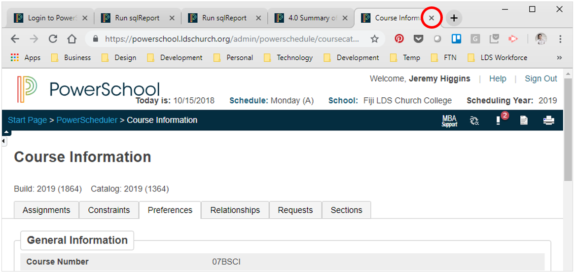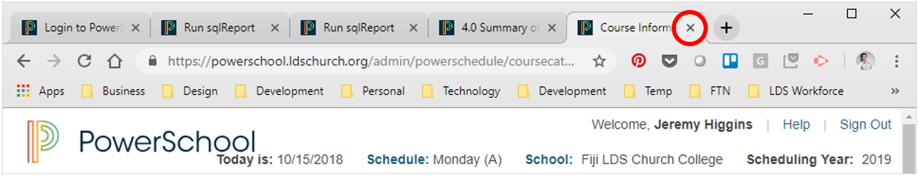 4. Once you have submitted the form, close the Course Information tab: