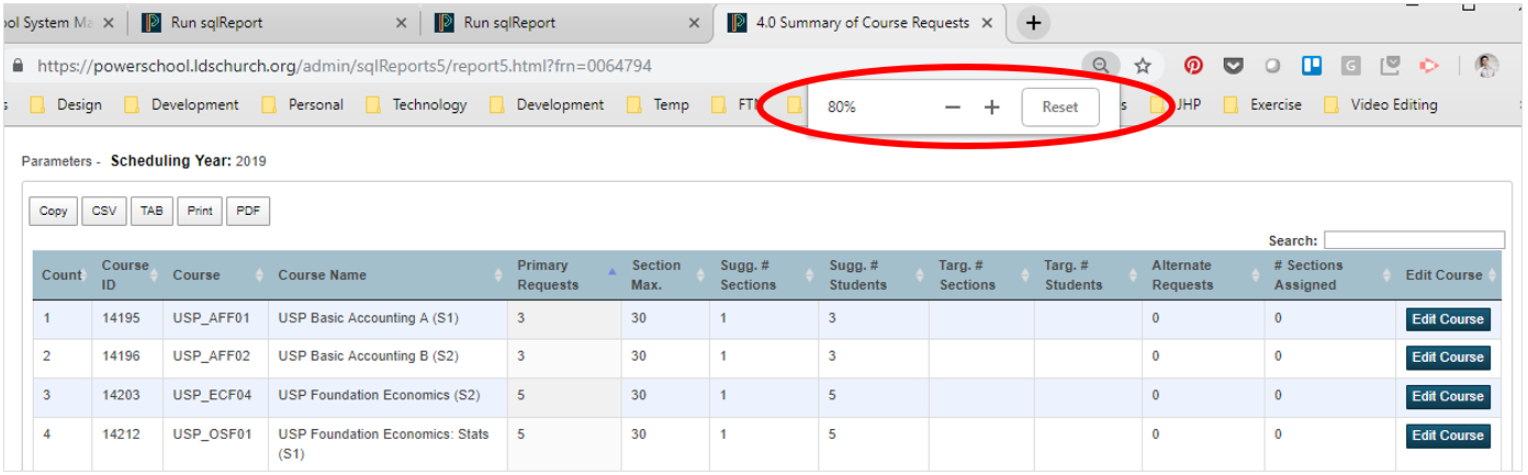 - Find and run the “Summary of Course Requests”
