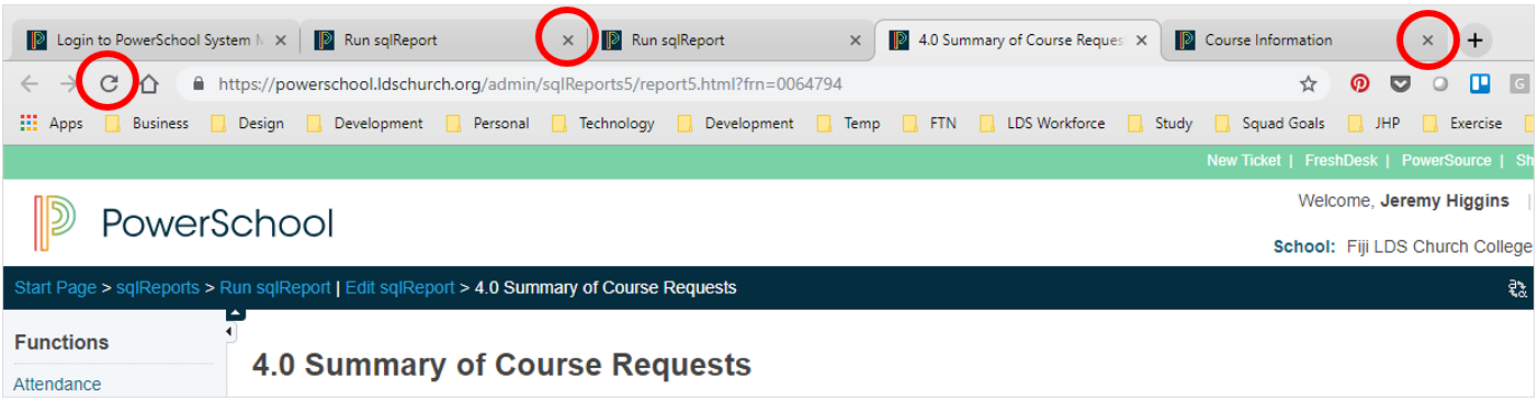 When the Edit Course button is clicked, the Course Information page will automatically open in a new browser tab. Be sure to keep track of the number of tabs that are open at any given time and close any tabs that are no longer required. You may need to refresh the Summary of Course Request data on a regular basis (by clicking F5) to ensure that the data you are seeing on the page is the most up-to-date: